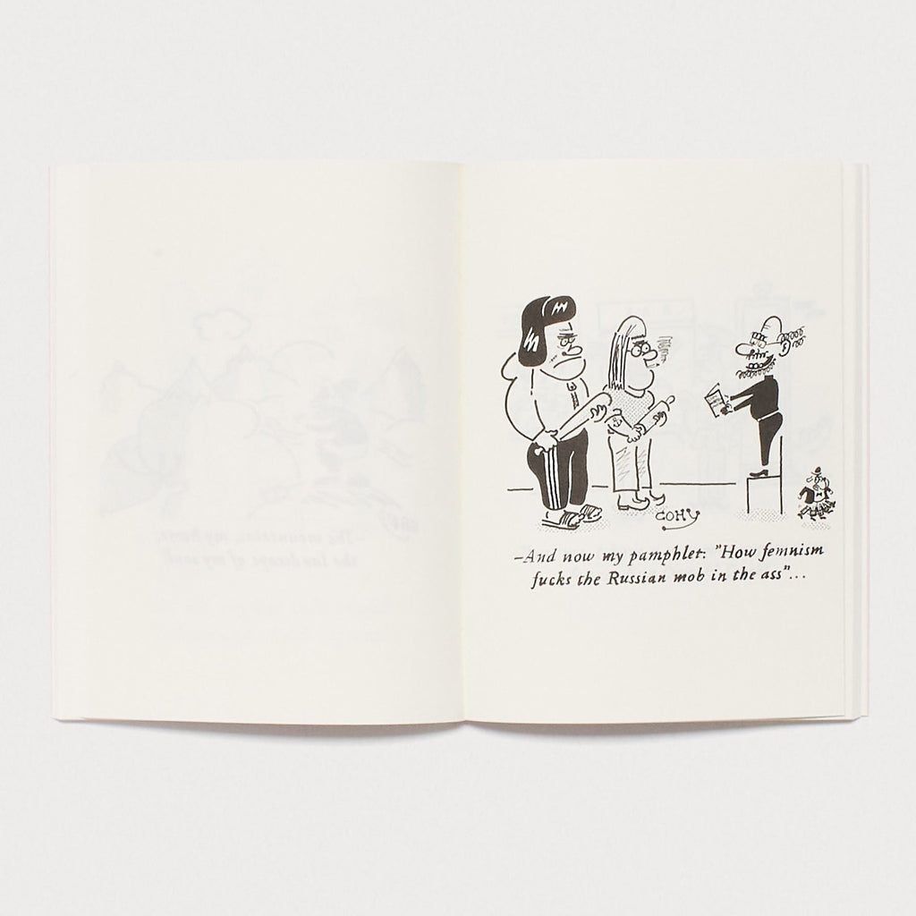 "Strannberg – The Chauvinist Manifesto" is the preliminary complete collection of the cartoons Strannberg, which is published in the Norwegian literature newspaper BLA – Bokvennen Litterær Avis (the book contains all the cartoons in the period 2016–2024). In the series, we follow the self-absorbed author Strannberg (and his agent Don Ravioli), who travel through the thick and thin of Norwegian cultural life – populated by snobbish cultural elites, socialites, critics, writers, philosophers, and the occasional visit from Karl Ove Knausgård.