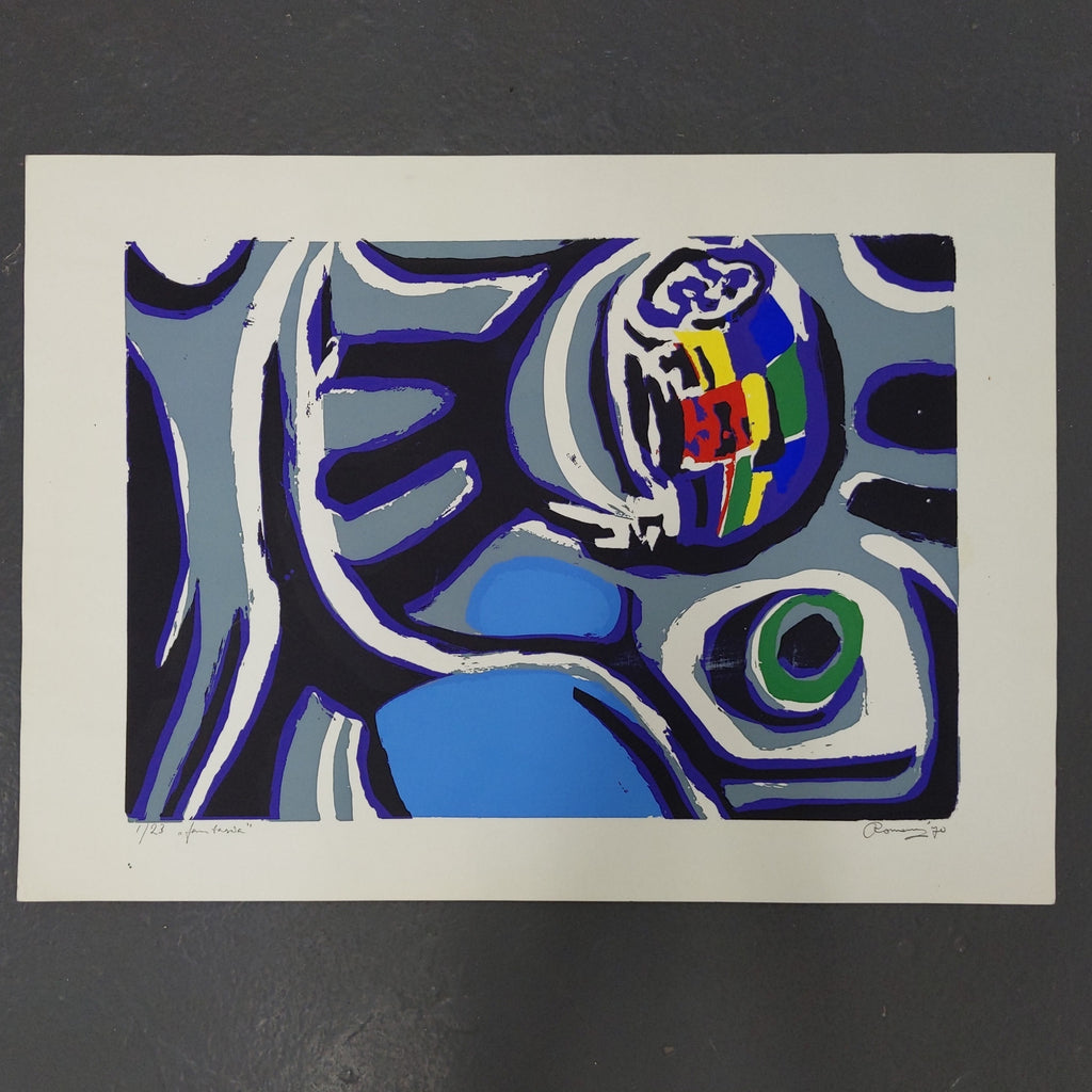 My dad Edlef was primarily a painter, but he also made a lot of prints. Mostly etchings but still quite a few lithographs. They have been sitting in flat files for years, so some of them will need a matte before going up on a wall (if you are that type) as the edges can have some stains. I blame my dad for not being very careful with his own creations! You should have seen how he left paintings leaning into corners of other paintings, making bumps in the canvases. Luckily the bumps disappeared when we kids put the paintings back in order. My dad was a lovely mess.
