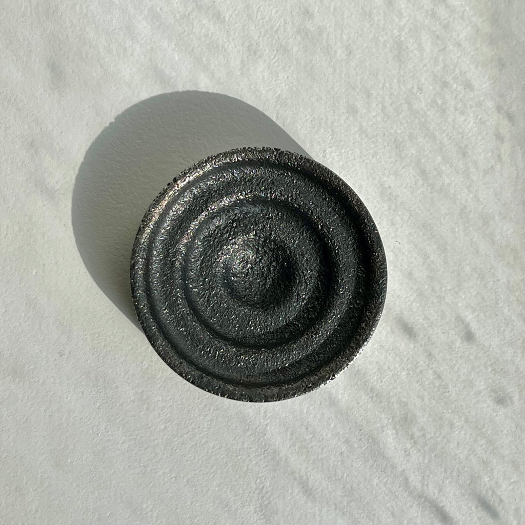 Puck is heavy, made to remain in a place, to hold when needed, to remind one that life is solid. It's handmade, it's not perfect, recalling that nothing is. It's meant to be touched, it can get scratched, it will tarnish and change, it will rust, as the world does. Like Kendall, Puck is a grounding force. When I hold it in my hand while reading, when I put it on my thigh when writing, on my chest when napping, I feel the connection to what is around me, firmly on the earth.