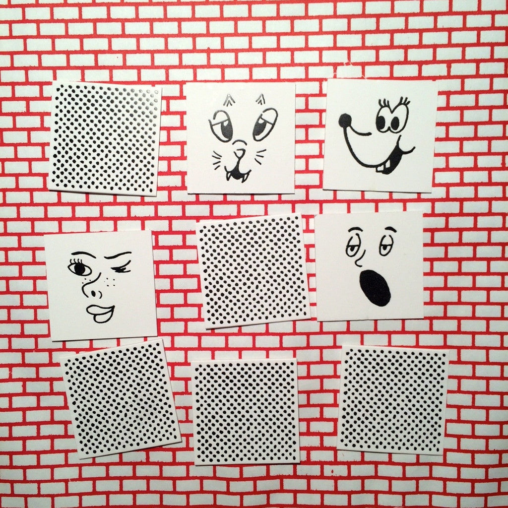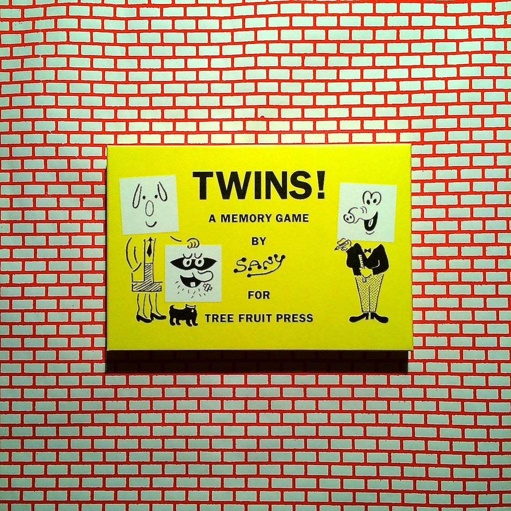 Twins! A happy memory game of Sany characters. Who said it’s fashionable to forget what you are talking about in the middle of a sentence? Selective short or long-term memory is simply a thing of yesterday. Wait, huh... yesterday? Oh, yeah... thanks to the Sany memory game I never have to worry about things I did or said an hour ago, it helps train my thoughts for today and tomorrow. No offensive characters in this pack - this set is made for kids and adults alike with Susy Sue, Panting Piglet, Jolly Jim, Hollow Mouth Tom, etc. in attendance. Chic, printed on a letterpress in Stockholm for the fabulous Tree Fruit Press.