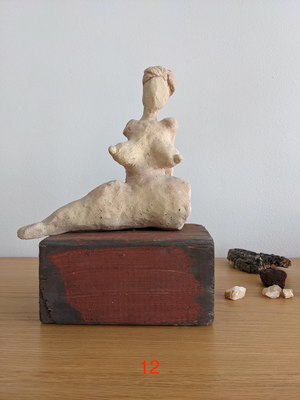 The materials are consistent, mixed, all very simple, clay dug by hand, discarded brick or wood or stone. Painted with the colors found in the local ground or the lime paint for the walls of the house. He dug the clay locally or in the Camargue, taken from two wild worlds. The material made it into his hands as he said, “a gift from the earth.” The work is not about calculation, it is pure, from the heart, from the gut, inside.
